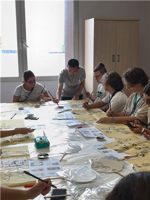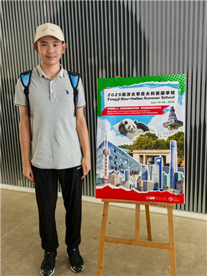 暑假尾声,张子一跟随陈才老师走进同济大学中意学院,与意大利同学开展跨文化交流。当他铺开宣纸,写下“友谊”二字时,意大利同学围在一旁,眼中充满好奇。在他的指导下,他们认真尝试握笔书写。虽然笔画生涩,但纸上不同语言书写的“友谊”却成为文化交融的生动注脚。这次经历让他深刻体会到,文化是跨越国界的桥梁,而学校的“走出校园、拓展视野”理念,正助力他成为这座桥梁的搭建者。