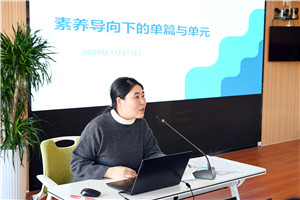 园南中学九年级备课组长严宁一老师则以“山水载志,素养潜行”为题,简要介绍了本单元的整体教学设计思路,强调以“景-情-志”为线索,通过“单元定方向、单篇落细节、迁移促进阶”实现素养的闭环培养。