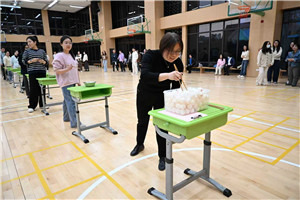 比赛现场气氛热烈,本次活动设置了“筷子夹球接力”项目,既考验个人技巧,更强调团队默契。随着裁判哨声响起,比赛正式开赛:选手们手持筷子,紧盯起点桶中的乒乓球,精准夹起后小心翼翼放入下一个碗中,放下球后,选手立刻返回起点重新夹取,队友们则在一旁轻声提醒“稳一点,别着急”,加油声此起彼伏。教工们在比赛中展现出不服输的拼搏精神,赛场化作欢乐的海洋;大家暂时卸下教学的疲惫,脸上洋溢着运动的喜悦。