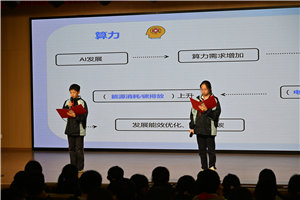看着视频里“无所不能”的AI,主持人用同学们可理解的语言提出了“算力”的概念以及支撑“算力”发挥的电力供给,指出大家在享受AI时代带来的便利同时,世界正承受着能源压力。节目中环保专家强调智能技术发展不能以破坏环境为代价,促使科学家们积极研发“绿色AI”,技术突破让“高性能”的AI同时实现了“低能耗”消耗。这让同学们明白,科技发展也要守好生态底线,环保意识在智能时代同样重要。
