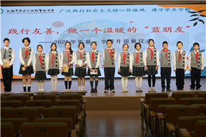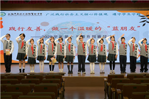 本次活动由六(2)雪狼中队策划并主持。仪式在庄严的国歌声中拉开序幕,主持人樊锦鸿、刘欣延以亲切的互动引出“蓝朋友”的特殊含义——那些如蓝色般宁静可靠、主动散发友善的伙伴。他们倡导将“志愿者”的崇高精神融入日常,让友善成为触手可及的习惯。