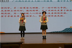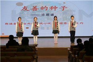 随后,黎谷雨欣、钱心悦等队员带来诗朗诵《友善的种子》。伴着轻柔的配乐,队员们用饱含深情的语言,将友善比作阳光、清泉、火焰与明灯,在朗朗童声中传递“播种友善,收获温暖”的信念,赢得了现场师生的阵阵掌声。