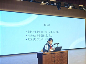 接下来,来自各班的七位优秀学生代表结合试卷与自身学习体会,分享了各学科的复习心得与方法。语文方面,九(1)班王秋辰同学强调基础落实,建议系统梳理文言字词、文学常识与名句,并通过精练阅读、勤于练笔提升综合能力。数学学科,九(6)班卢偲玥同学提倡构建知识网络,重视错题归因与真题研习,避免盲目刷题。英语学习上,九(2)班赵张阳同学建议围绕考纲词汇、语法知识、语境感知和每日输入展开复习,并注重书面表达的训练与书写规范。物理与化学学科,九(3)班蔡堉杞和九(5)班刘泓逸同学分别指出要深化对原理规律的理解、熟练化学用语与实验思维,并联系生活实际提升科学素养。道德与法治与历史学科,九(1)班李聚程和九(4)班黄珂同学则强调知识框架的梳理、时序线索的建立,以及结合热点进行分析的能力培养。