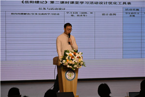 一张表格让学生的学习真正发生。语文组徐皓轩老师分享了《岳阳楼记》教学优化的实践与思考,重点介绍了“课堂学习活动设计优化工具表”在此次教学优化中的应用方法。徐老师逆向设计目标,正向填充活动,检验闭环逻辑。通过工具表的反复迭代完善,原本混沌的教学思路逐渐清晰,抽象的学习目标转化为可见、可操作、可评价的学生认知实践,课堂教学更具有针对性与实效性。